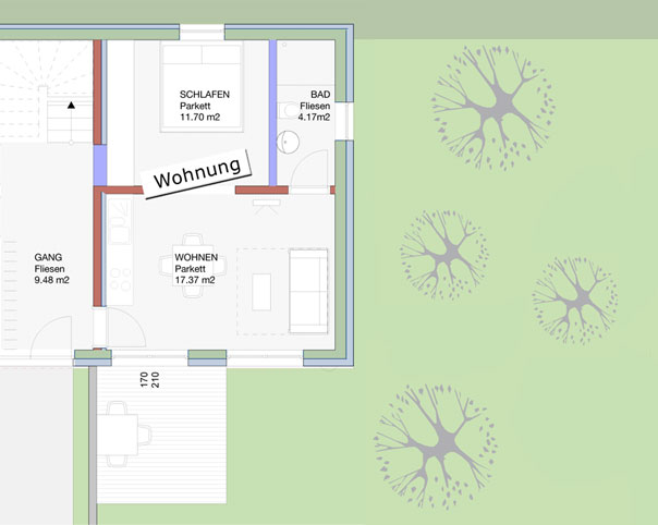 - Garten - der in sonniger Süd- und Südwestseite liegt und Ihnen zur Alleinbenützung zur Verfügung steht. Gartentisch mit Stühlen, Gartenliegen und Sonnenschirm stehen bereit.
